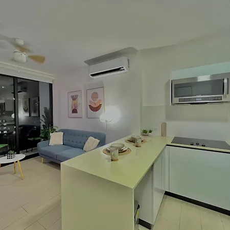 Modern Apartment W City View And Balcony Panama City provides easy access to various city attractions, such as Dance with me by Anixon Garcia, situated only a 5-minute walk away. The apartment comprises a terrace where guests can enjoy seaside views of the sea.